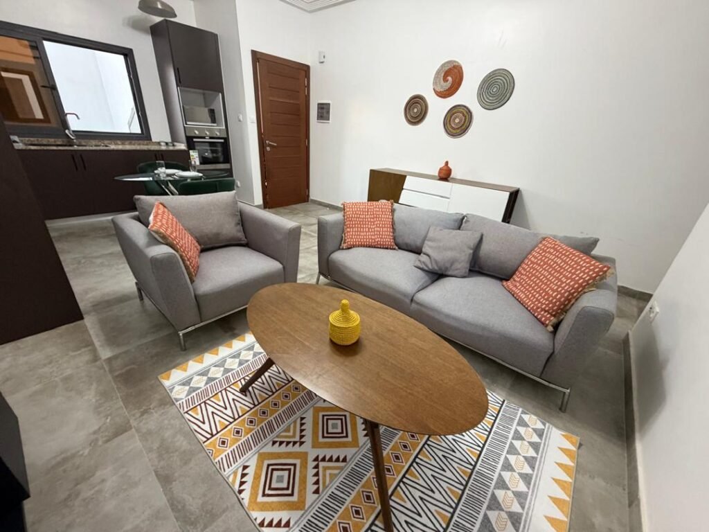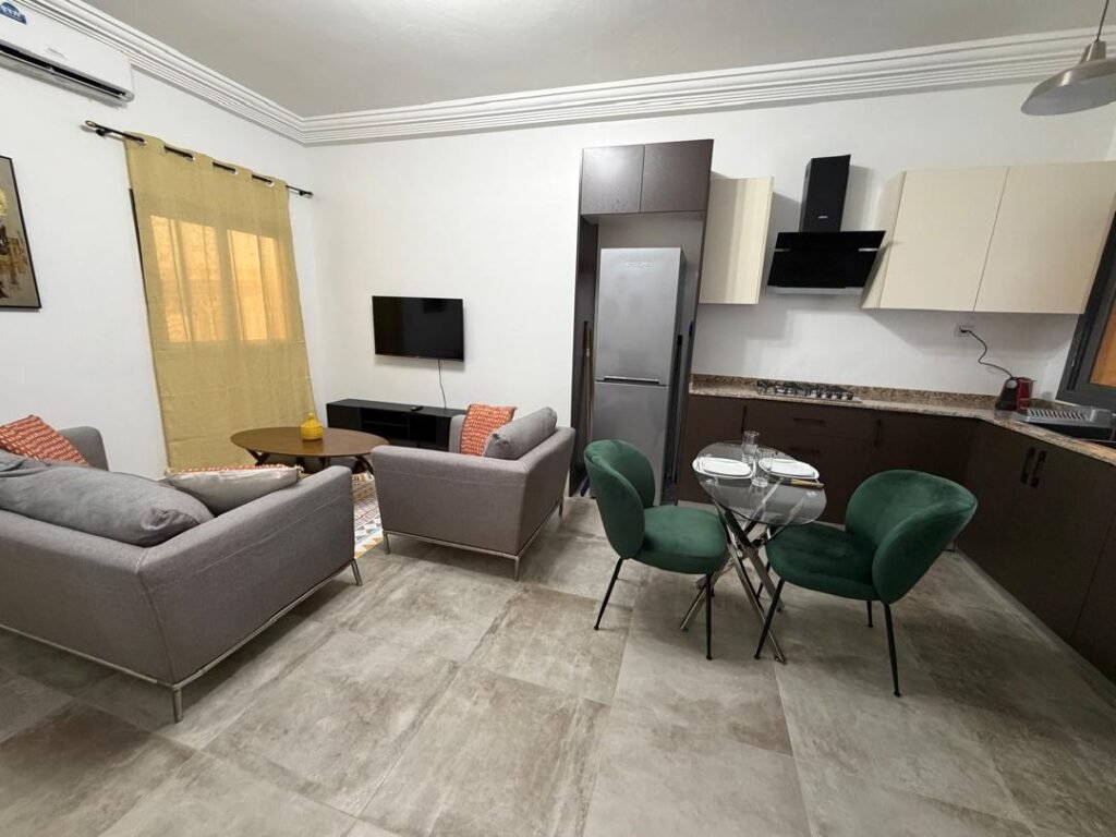 📍 Appartement 2 chambres entièrement meublé, climatisé et très bien équipé, situé dans une petite résidence sécurisée avec piscine commune — idéal pour un cadre de vie confortable et paisible.