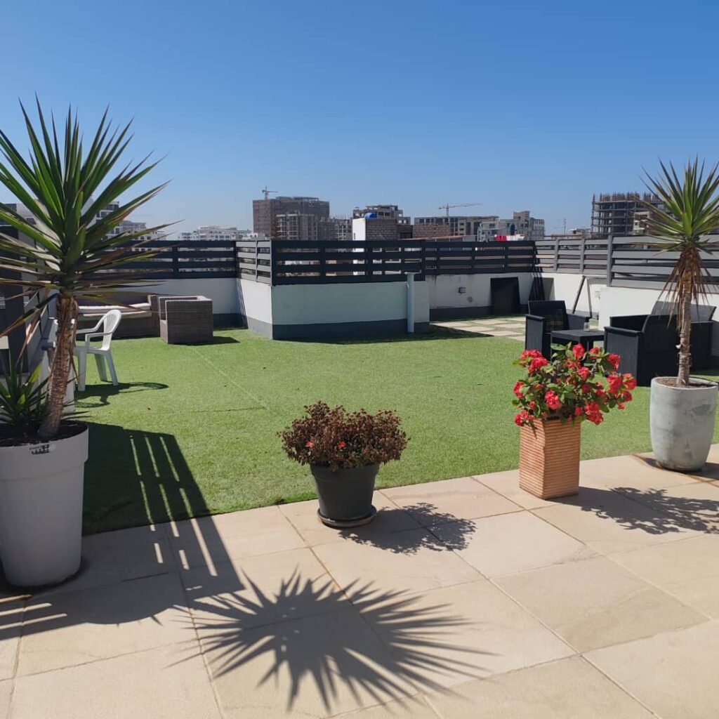 Superbe terrasse aménagée en rooftop avec une vue imprenable sur la mer 😍