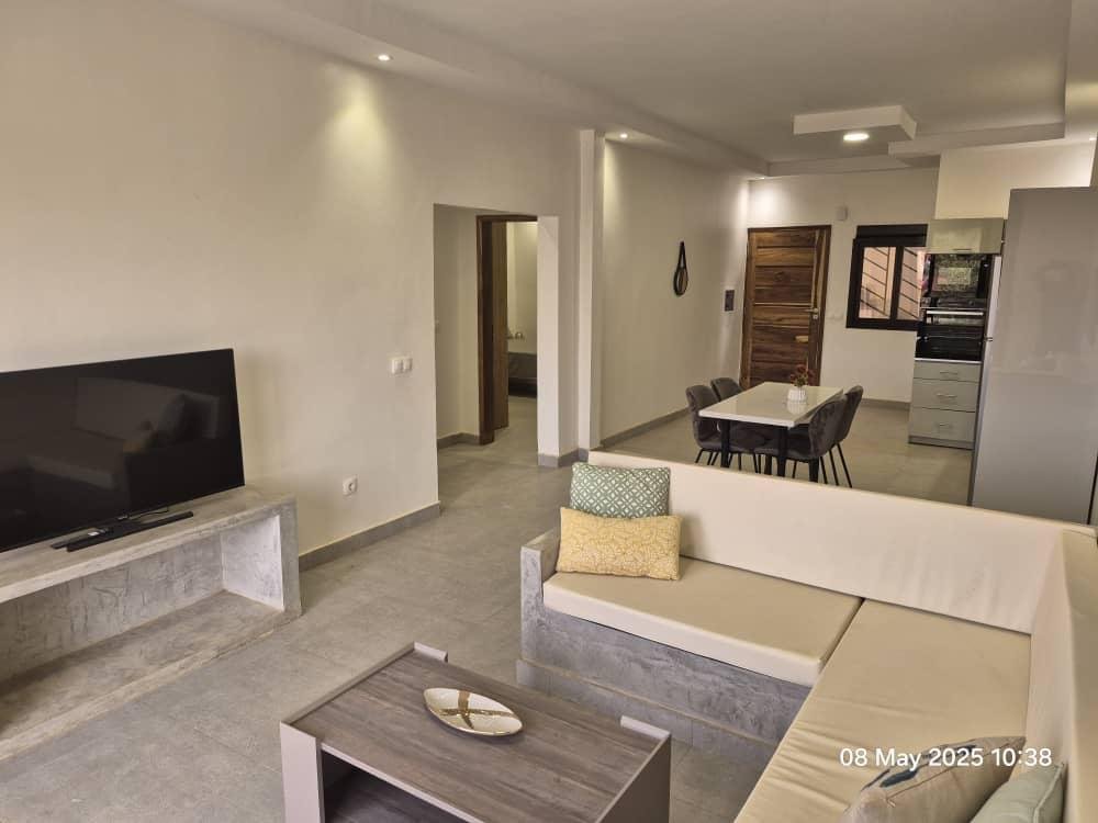 📍 Appartement 2 chambres entièrement meublé, climatisé et très bien équipé, situé dans une petite résidence sécurisée avec piscine commune — idéal pour un cadre de vie confortable et paisible.
