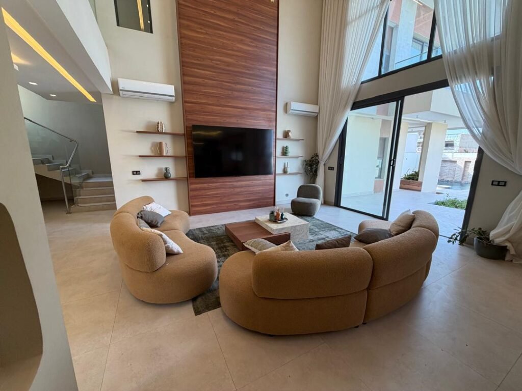 Le point fort de la villa ? Son vaste salon avec une impressionnante hauteur sous plafond qui apporte une luminosité exceptionnelle et une sensation d’espace incroyable.
